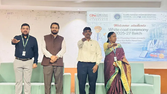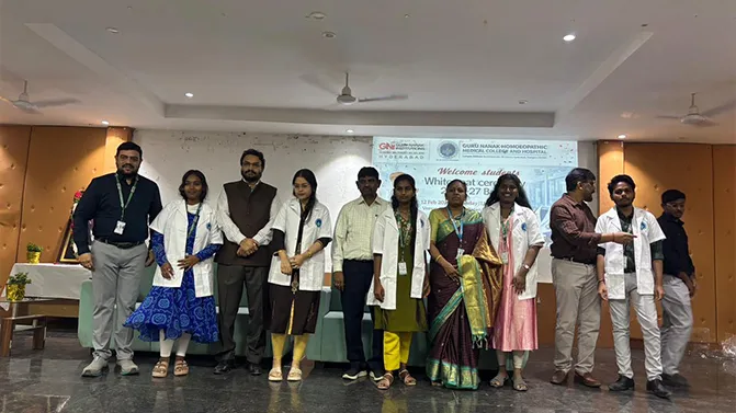The White Coat Ceremony 2025-27 Batch at Guru Nanak Homoeopathic Medical College and Hospital marked a proud and memorable beginning in the journey of future healthcare professionals. The ceremony was graciously led by Sardar Gagandeep Singh Kohli, Chancellor of Guru Nanak University and Vice Chairman of Guru Nanak Institutions, along with Dr.